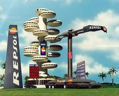 Los surtidores también eran distintos, unos de acero inoxidable, muy grandotes, con pantallas de plasma a cada lado y largos brazos como gruas, parecían un transformer en la posición de reposo, ¡Y el surtidor, hablaba tres idiomas! ¡Que pasada! Y mientras echabas combustible, los monitores daban publicidad e información del tráfico, ¡La leche!, "Ha elegido usted plutonio enriquecido"